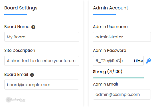 • Admin Username: Your new phpBB username (for security reasons, do not use the administrator or the admin username).
