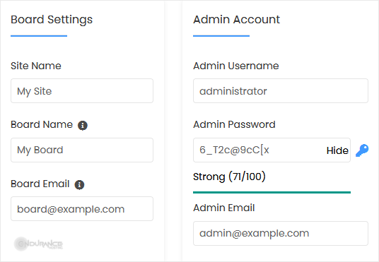 • Admin Username: Your new MyBB username (for security reasons, do not use the administrator or the admin username).