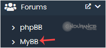 4. On the left side, locate the Forums category. Click on it and then on the MyBB link that appears.