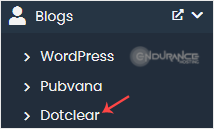 On the left side, locate the Blogs category. Click on it and then on the Dotclear link that appears.