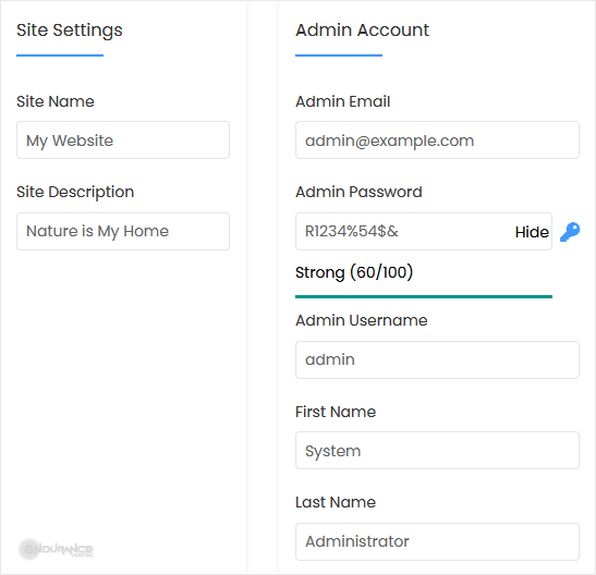• Admin Username: Your new Dotclear username (for security reasons, do not use the administrator or the admin username).