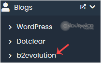4. On the left side, locate the Blogs category. Click on it and then on the b2evolution link that appears.