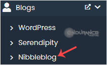 4. On the left side, locate the Blogs category. Click on it and then on the Nibbleblog link that appears.
