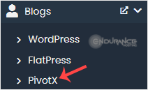 4. On the left side, locate the Blogs category. Click on it and then on the PivotX link that appears.