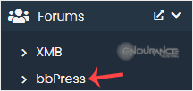 4. On the left side, locate the Forums category. Click on it and then on the bbPress link that appears.