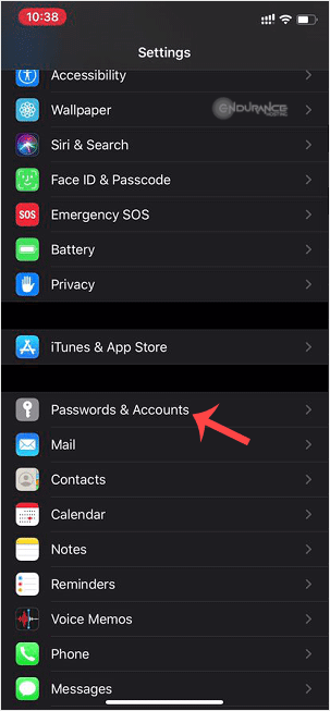 2. Scroll down and tap on Passwords & Accounts.