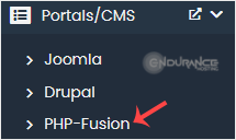 4. On the left side, locate the Portal/CMS category. Click on it and then on the PHP-Fusion link that appears.