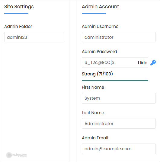 • Admin Username: Your new OctoberCMS username (for security reasons, do not use the administrator or the admin username).