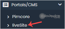 4. On the left side, locate the Portal/CMS category. Click on it and then on the liveSite link that appears.