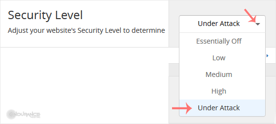 5. In front of the Security Level, you can see the drop-down menu. Choose the Under Attack option, and your settings will be automatically saved.